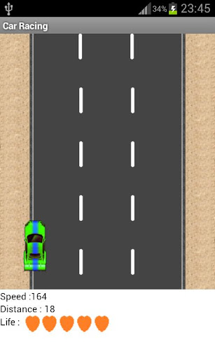 Araba Yarışı oyunu. Çarpışmalardan kaçınarak ve maksimum hız kullanarak puanları kazanın. Arabanızı kontrol etmek için mobil cihazı yönlendirme sensörü kullanın.Yolda kalmaya ve kazalardan kaçınmaya çalışın.