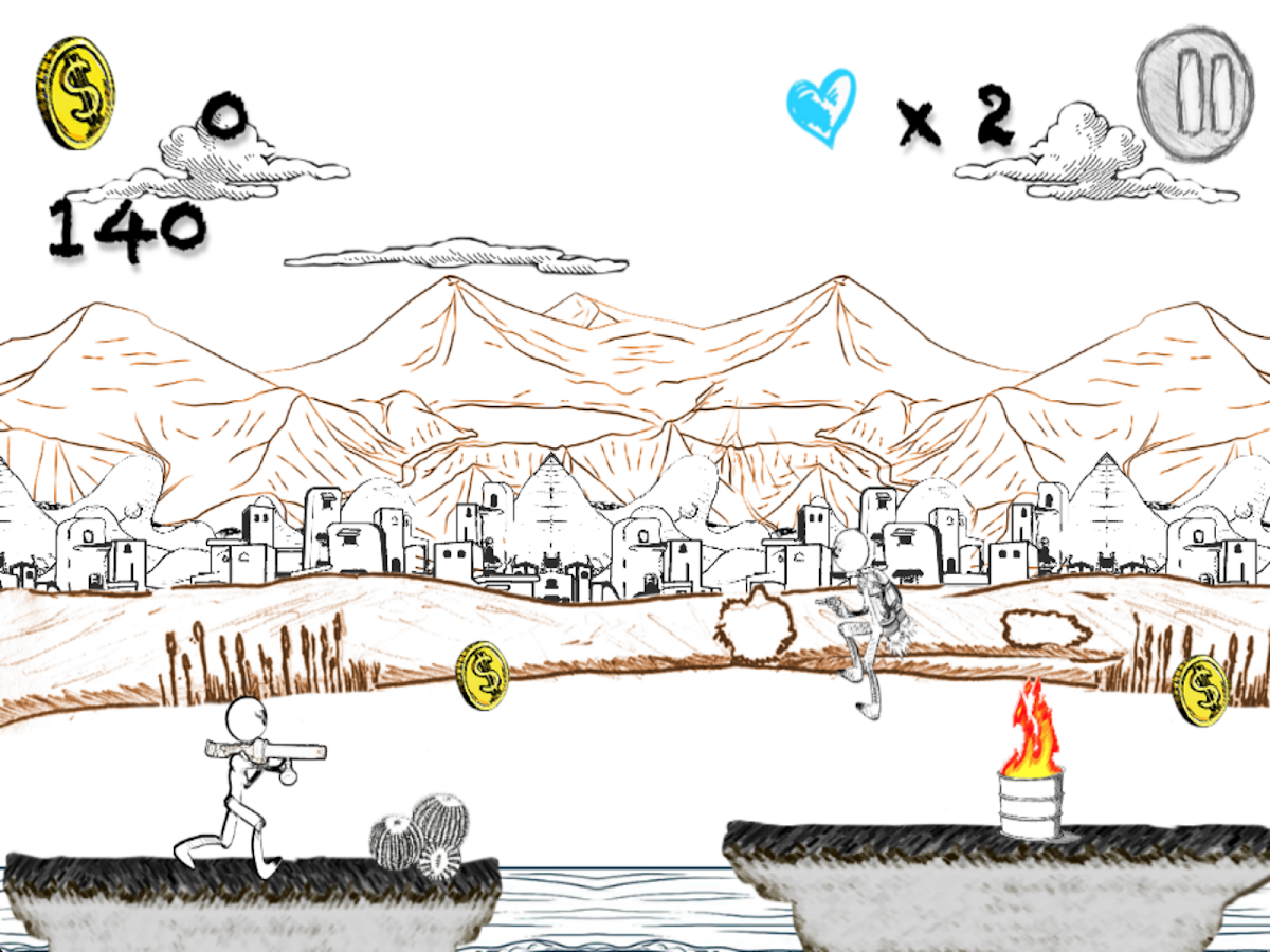 Juegos de dibujo stickman divertido y entretenido con los grandes gráficos y personajes y música. Viaje a través de la tierra del desierto para luchar contra el ejército stickman. Conforme pasa el tiempo la velocidad aumentará y el juego será más difícil. Disfrute de este tiroteo stickman gratis run interminables con gráficos y música increíbles. Batir tu mejor récord!