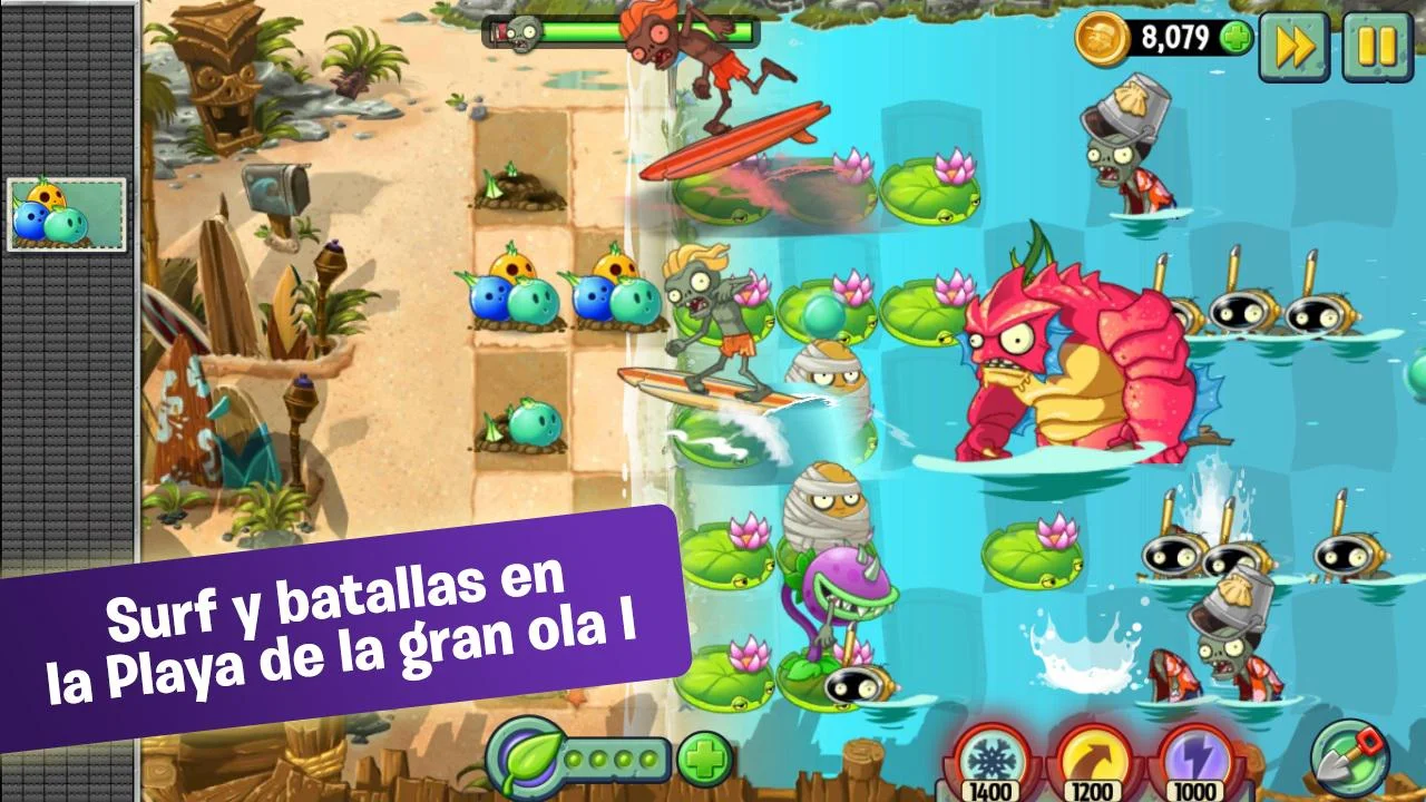 Los zombis... vuelven. ¡Ya era hora! La segunda parte del juego de estrategia y acción lleva la diversión a las tabletas y pantallas táctiles. Únete a Dave el loco en una increíble aventura en la que conocerás, te enfrentarás y derrotarás a legiones de zombis desde el amanecer de los tiempos hasta el ocaso de los días. Reúne un ejército de plantas nuevas y poderosas, cárgalas con Nutrientes y potencia tus defensas con las nuevas increíbles maneras de proteger tu cerebro. ¡Y esto es solo el principio! En el futuro aguardan muchos misterios... y zombis. Muchos, muchos zombis.• Conoce nuevas plantas poderosas que defenderán tu patio a través del tiempo